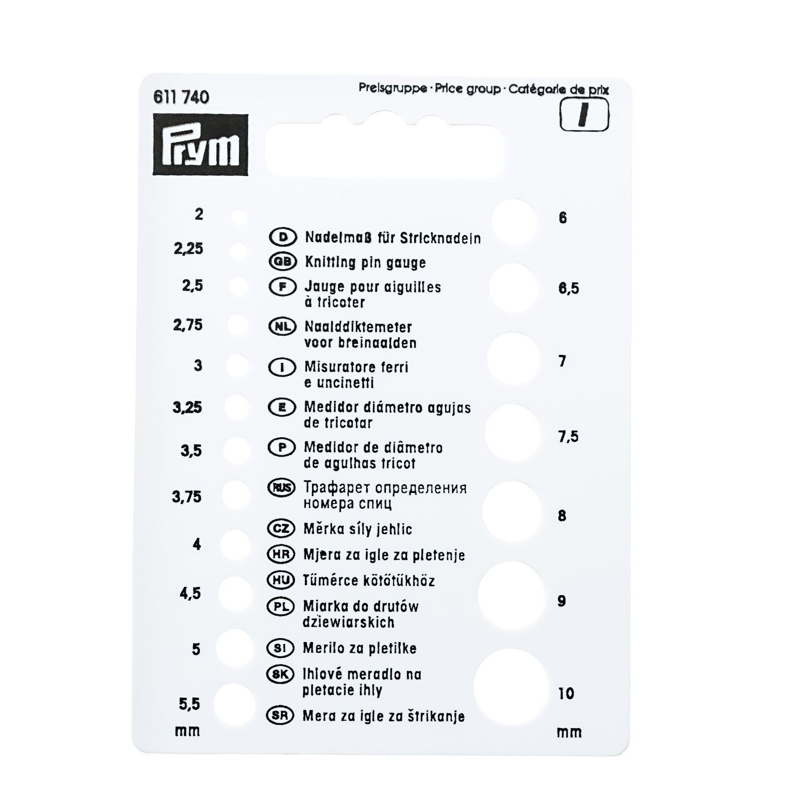 Prym 611740 Nadelmaß für Stricknadeln von Stärke 2 bis 10 | Material: Kunststoff
